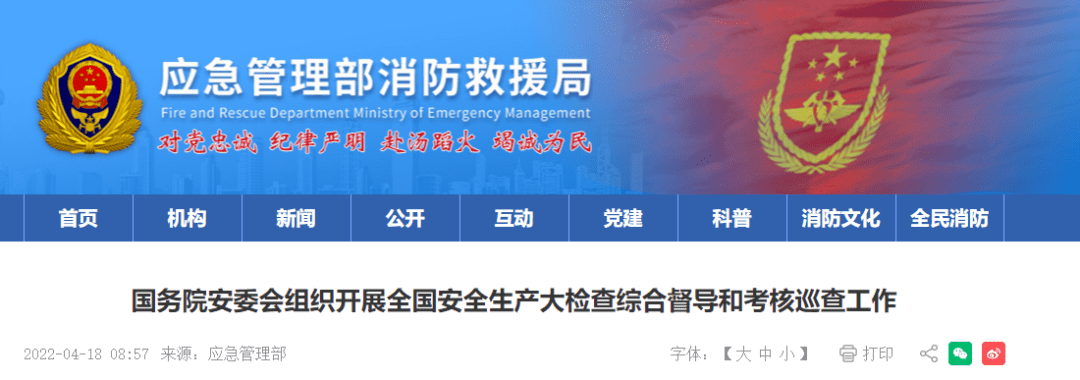 根據黨中央、國務院決策部署和全國安全生產大檢查工作安排,自4月中旬至6月底,國務院安委會組織16個綜合檢查組,對31個?。ㄗ灾螀^(qū)、直轄市)和新疆生產建設兵團安全生產大檢查情況進行綜合督導,并同步開展國務院2021年度省級政府安全生產和消防工作考核巡查及國務院安委會成員單位安全生產工作考核。