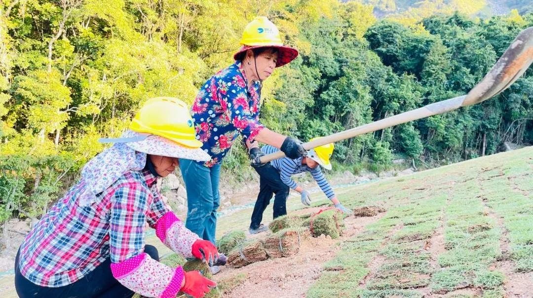 9月29日,在永定區洪山鎮王壽山廢棄礦山生態修復項目建設現場,工人師傅們搶抓當下施工有利天氣,忙著為裸露山體植草皮、建設排水溝、擋土墻等,確保項目按時序進度加快推進。“我們一期項目3個區域有2個在同步施工,包括建設景觀臺、石階路、停車場、人工湖以及相應的綠化,建成后會成為一個公園式的礦山生態修復項目。”永定王壽山廢棄礦山生態修復項目施工負責人江益群說。